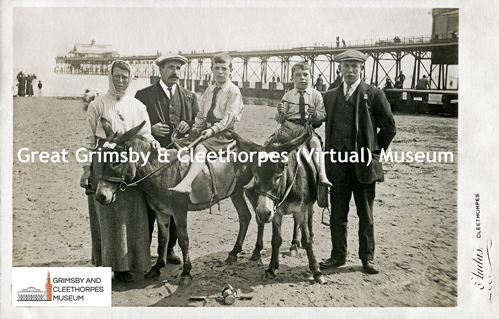 Two boys on donkeys by Cleethorpes Pier by Robert Audas c1905.