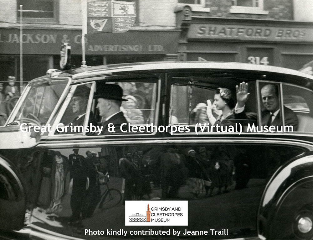 Royal visit to Grimsby in 1958; The Queen and Duke of Edinburgh are driven along Victoria Street.