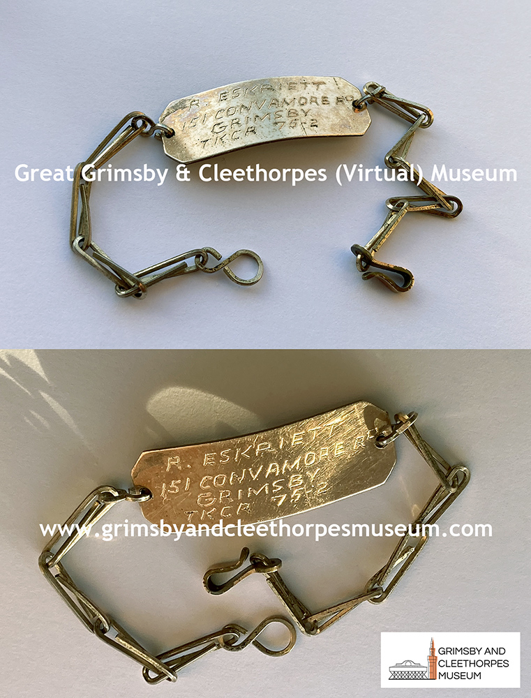 A WW2 identity bracelet which belonged to Rose Eskriett of Grimsby.