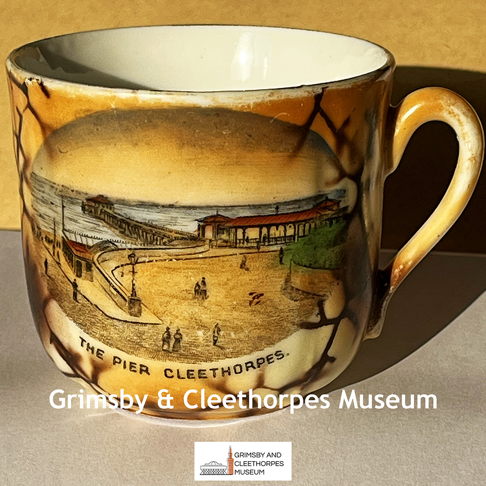 Cleethorpes Pier; a souvenir ceramic relief tea cup 1890s.
