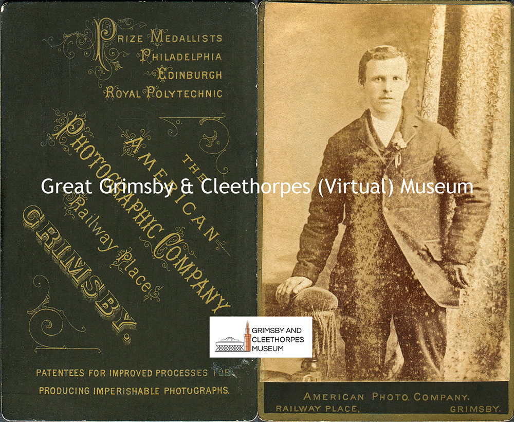 Small studio portrait of a man by The American Photographic Company, Grimsby c1890s.