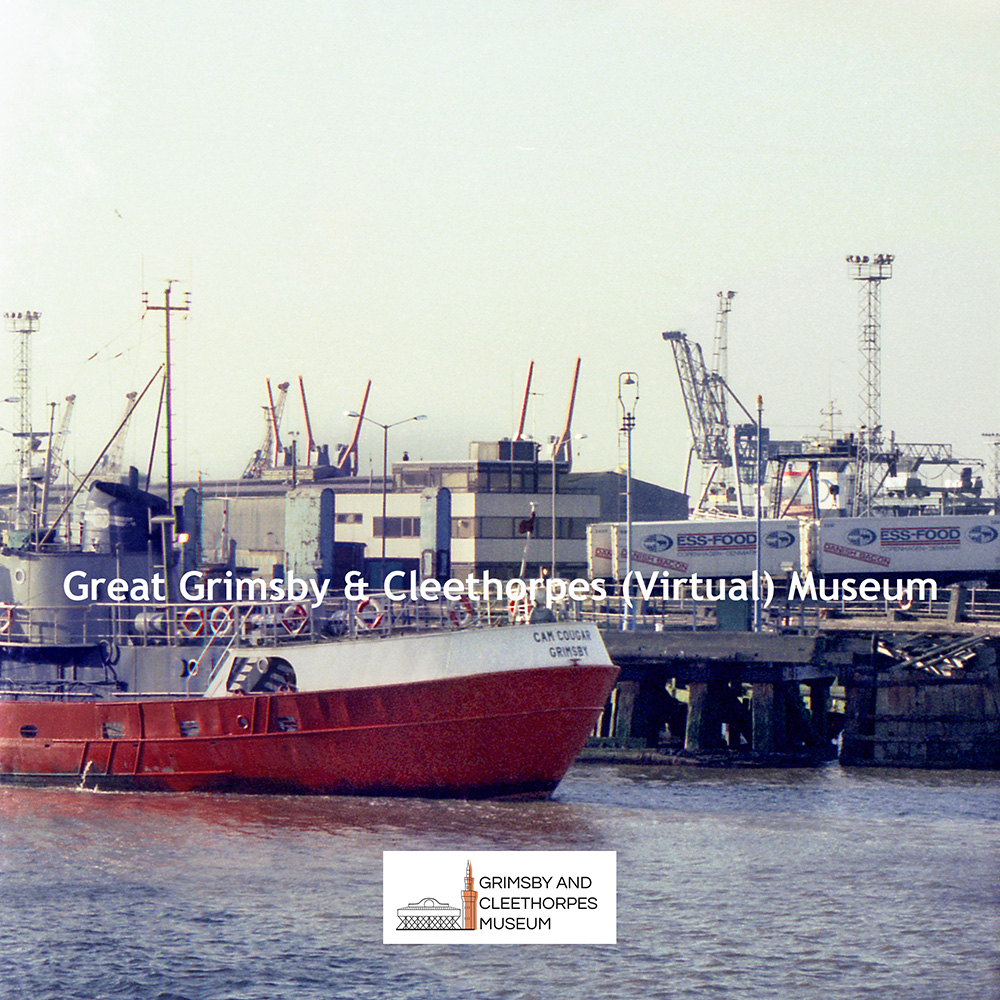 ‘Cam Cougar’ passes Ess-Food Danish bacon lorries at Grimsby Docks 1986.