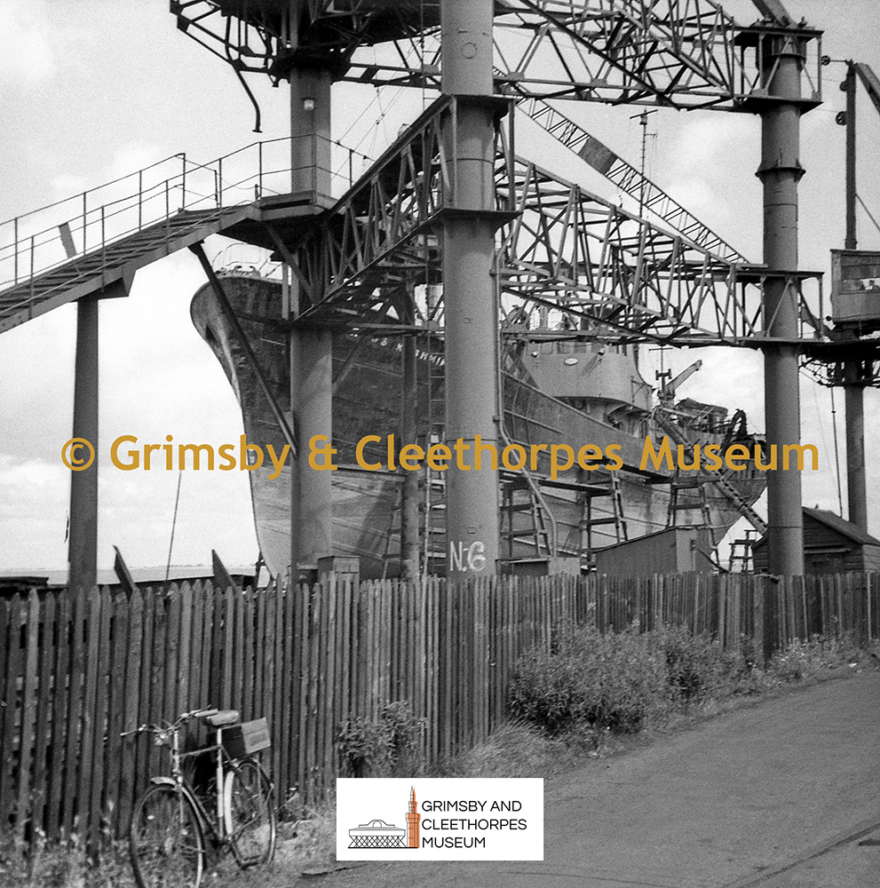 ‘Ross Kashmir’ GY.43 on Doig’s slipway for lengthening and conversion to diesel 1966.