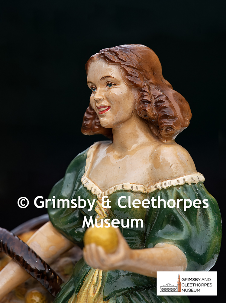 Tickler’s / Crosbie’s Marmalade; detail of a promotional statuette of Nell Gwyn c1940s/early 1950s.