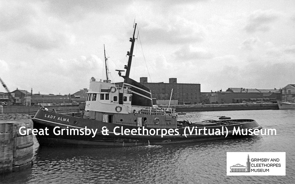 The tug ‘Lady Alma’ in the Royal Dock, Grimsby 1966.