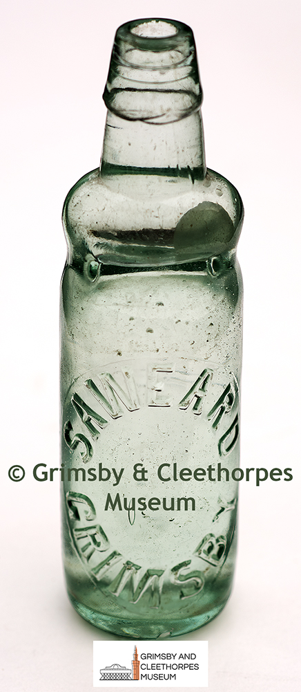 ‘Saweard of Grimsby’, bulb neck Codd bottle 1880s-1908.