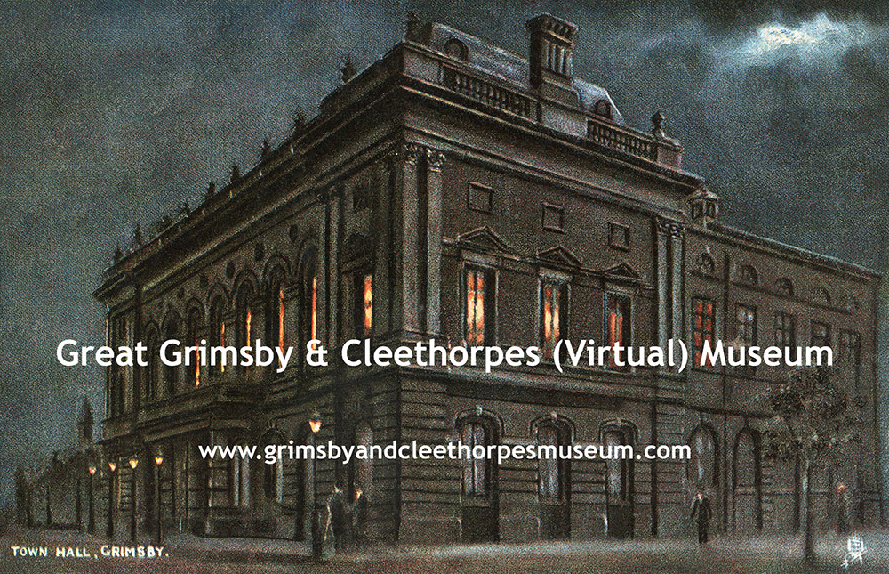 Town Hall, Grimsby at night c1904.