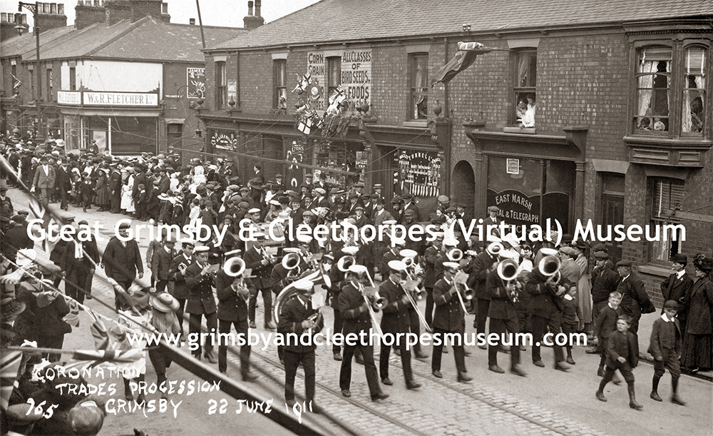 Coronation Trades Procession; Freeman St., Grimsby 1911.