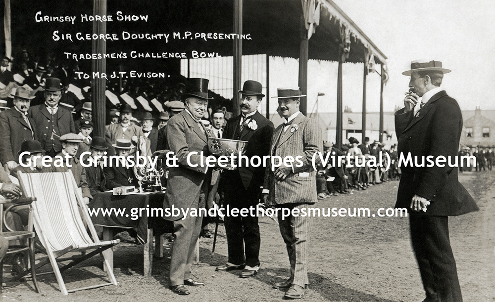 Grimsby Horse Show; Sir George Doughty M.P. presents a cup c1909.