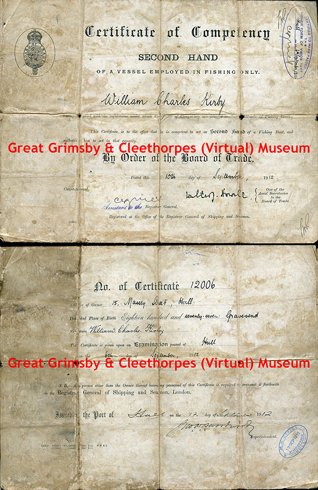 William Charles Kirby; Certificate of Competency, Second Hand, 1912.