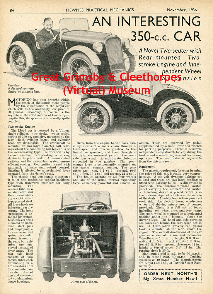 An interesting car made by Lloyd Cars Ltd. of Grimsby in 1936.