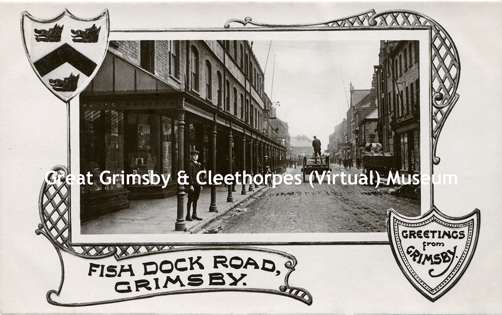 Greetings from Grimsby; Fish Dock Road c1909. An early “Jay Em Jay” Gy. Series postcard.