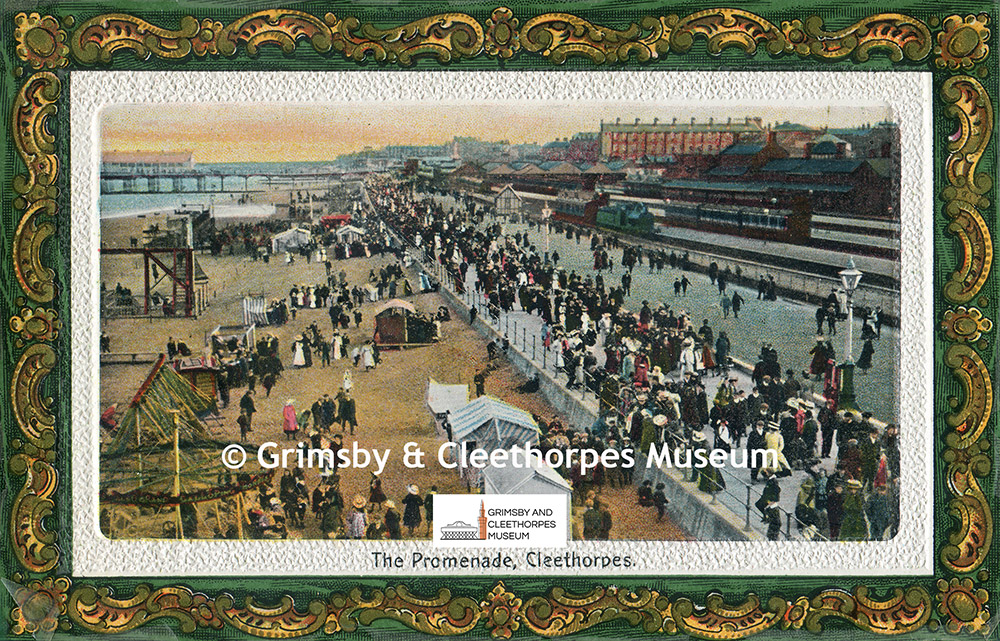 The Promenade, Cleethorpes; “F.C.C. Series” pictorial postcard with fancy border c1910-1920.