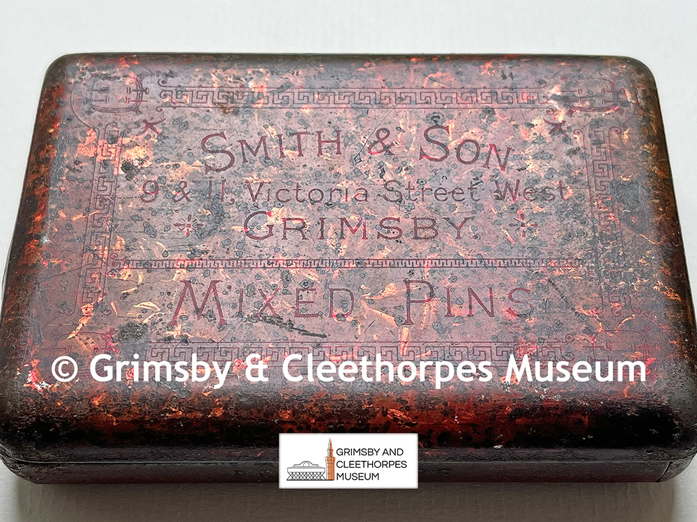 Smith & Son, Victoria Street West, Grimsby; fancy tin for mixed pins c1910s/1920s (or earlier)