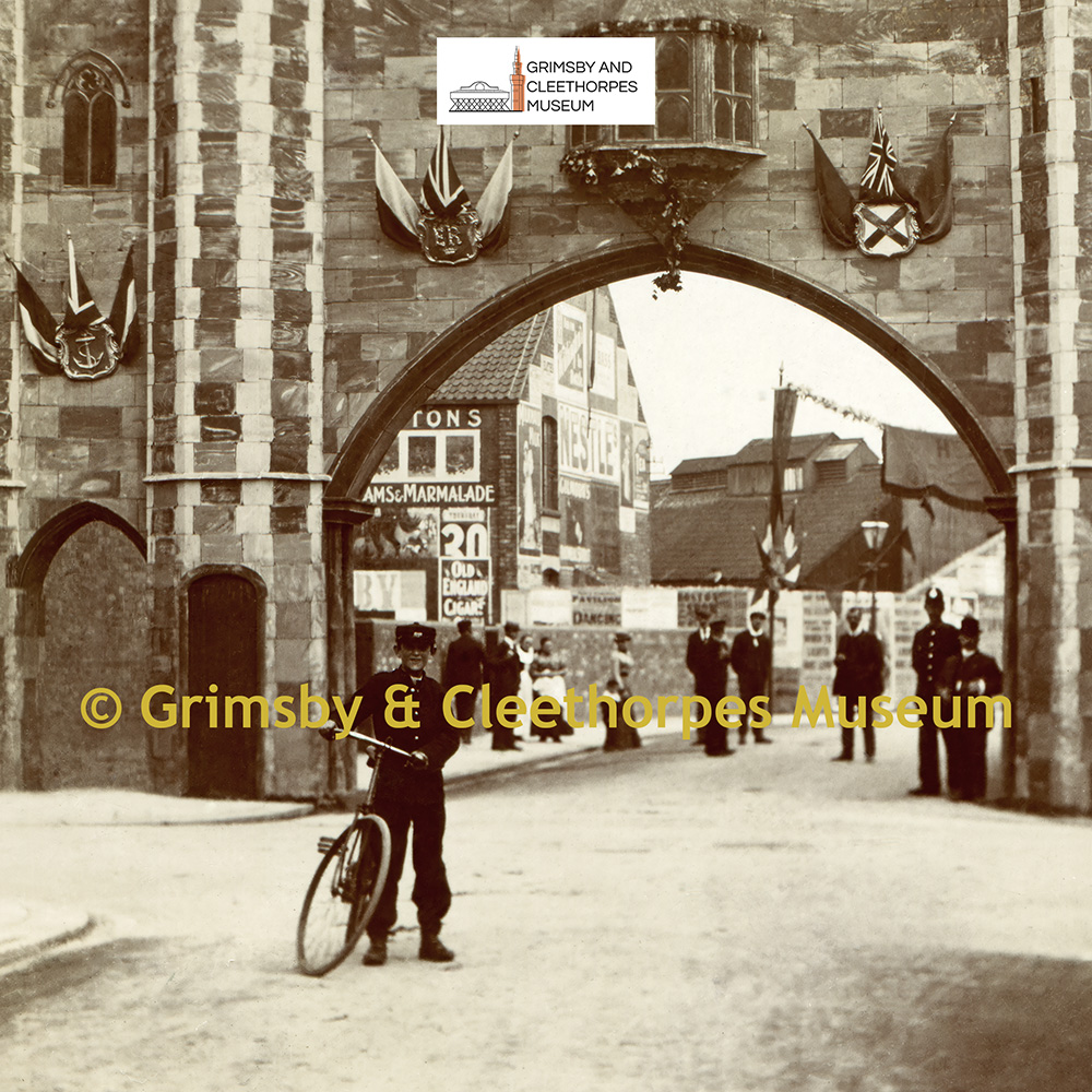 L.A.S. County Show decorations, Grimsby 1904; looking through the mock gateway in Pasture Street.