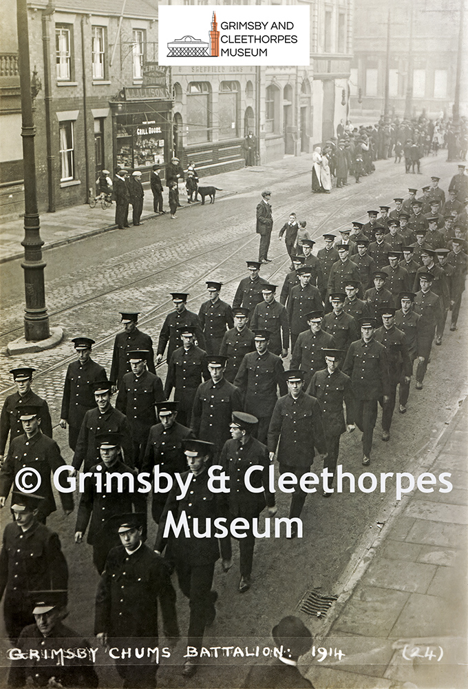 Grimsby Chums Battalion marching along Cleethorpe Road, Grimsby 1914.