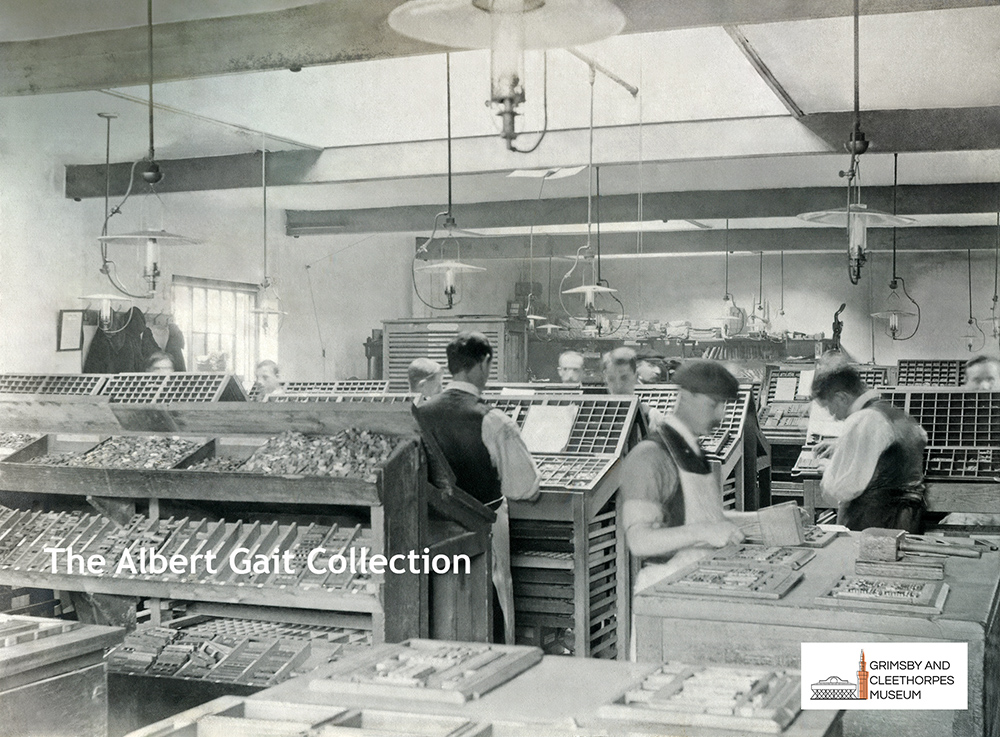 Albert Gait Ltd.; the printing works, Victoria Street, Grimsby – composing room c1910.