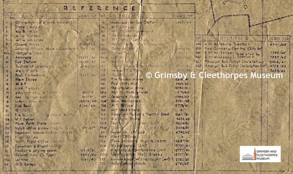 Key to a March 1943 plan of RAF Grimsby.