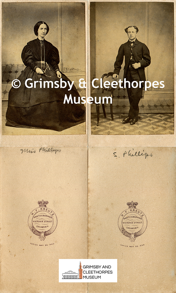 Studio portraits of S. Phillips and Miss Phillips by H. F. Kreutz of Grimsby c1870s.