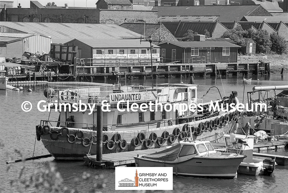 MV ‘Undaunted’ and the Grimsby College Water Sports Centre Alexandra Dock 1990s.