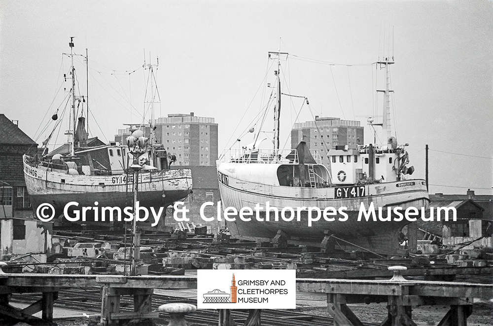 ‘Fiona Jane’ GY.1406 and ‘Sorrento’ GY.417 on the slipways 1987.
