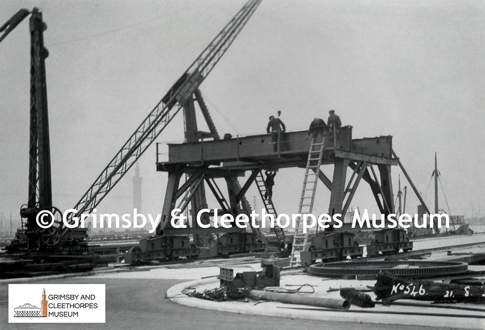Building a crane on the fitting out quay, Grimsby Docks 1934.