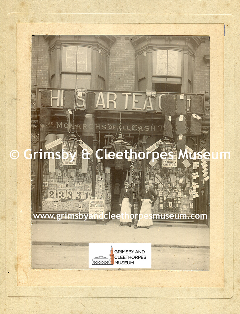 An original shopfront photo; The Star Tea Co. Ltd., 17 Freeman Street, Grimsby c1912.