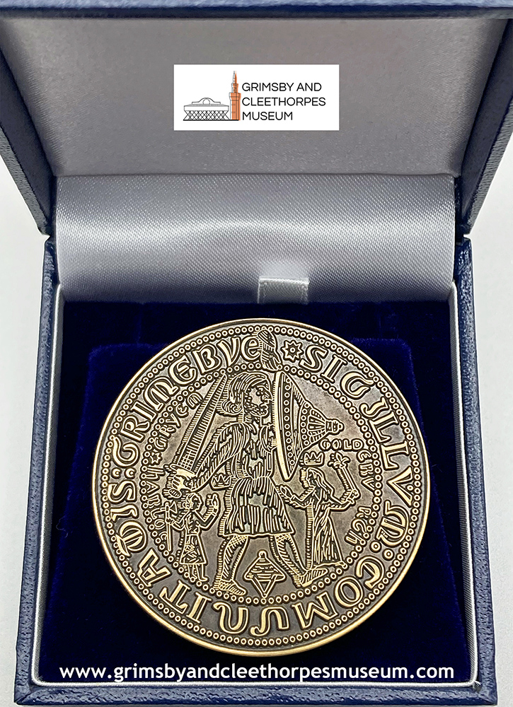 A copy of the thirteenth century seal of Grimsby Corporation.