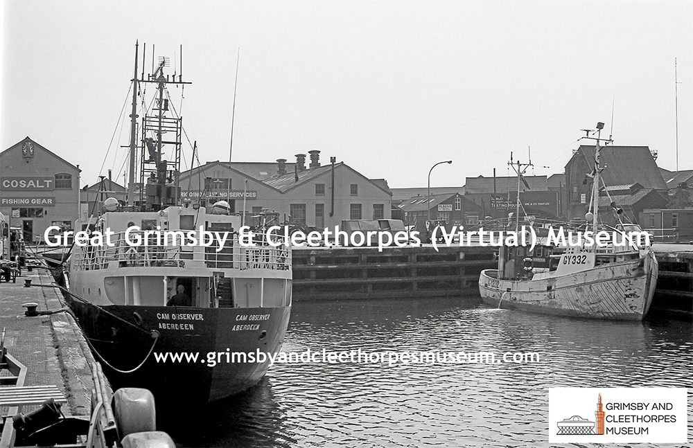 ‘Cam Observer’ and ‘Samora’ GY.332 between fitting out jetties, No. 3 Dock, Grimsby 1990.