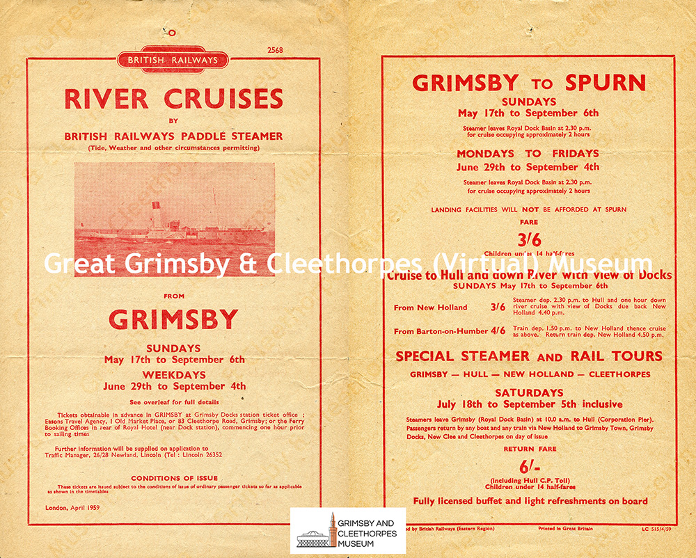 British Railways River Cruises from Grimsby by paddle steamer 1959.
