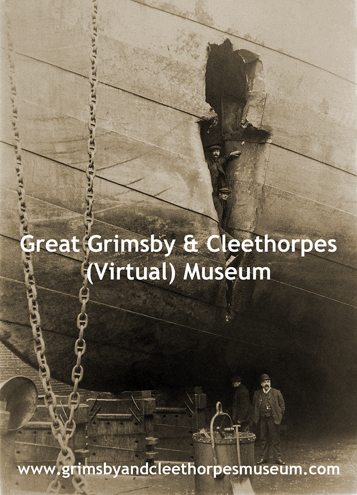 Immingham Docks; workers peer from a large gash in the bow of a ship c1930s.