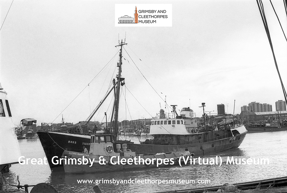 ‘Ross Tiger’ GY.398 in dock with the tug ‘Alfred Bannister’ 1982.