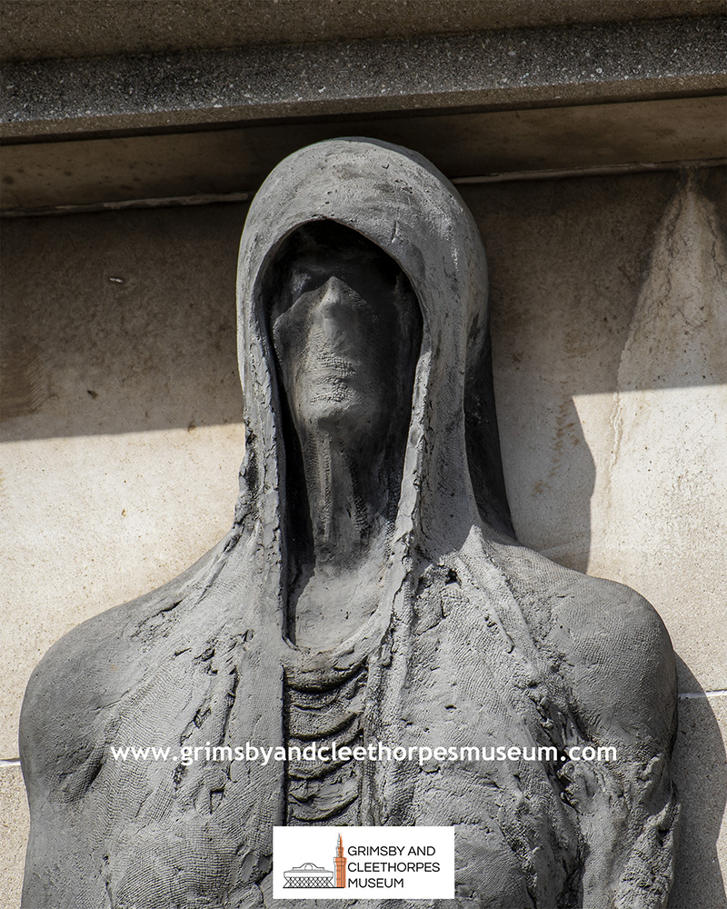 The cloaked ‘Guardian of Knowledge’, Grimsby Library 2022.