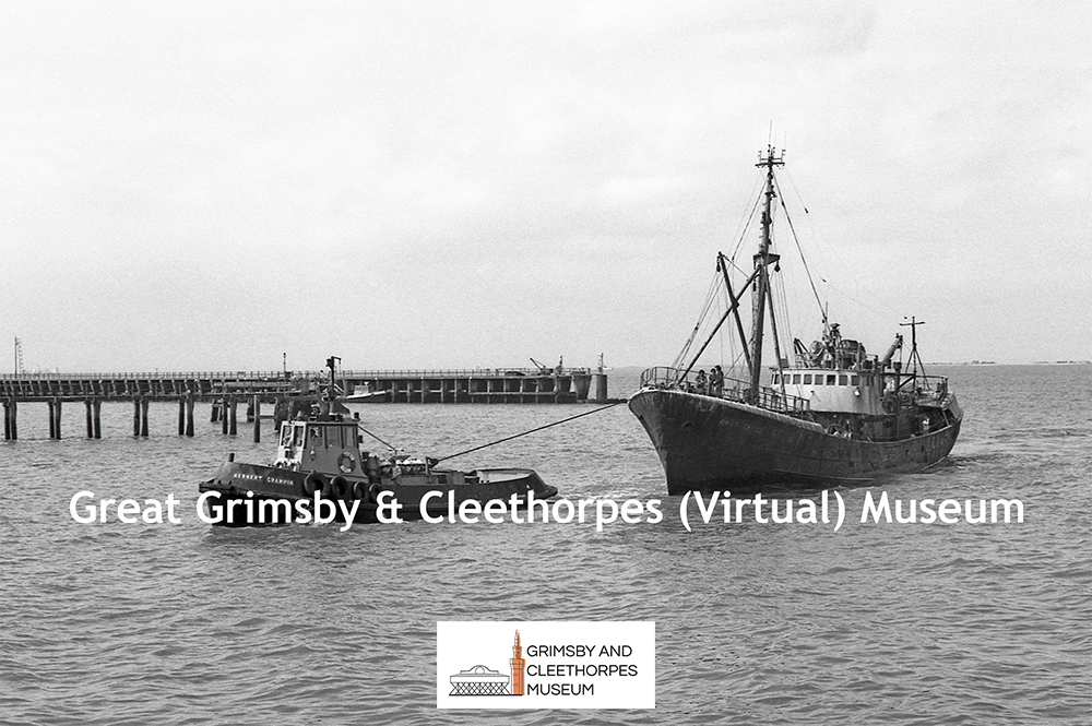 The tug ‘Herbert Crampin’ pulling ‘Ross Zebra’ GY.653 into Grimsby Docks 1983.