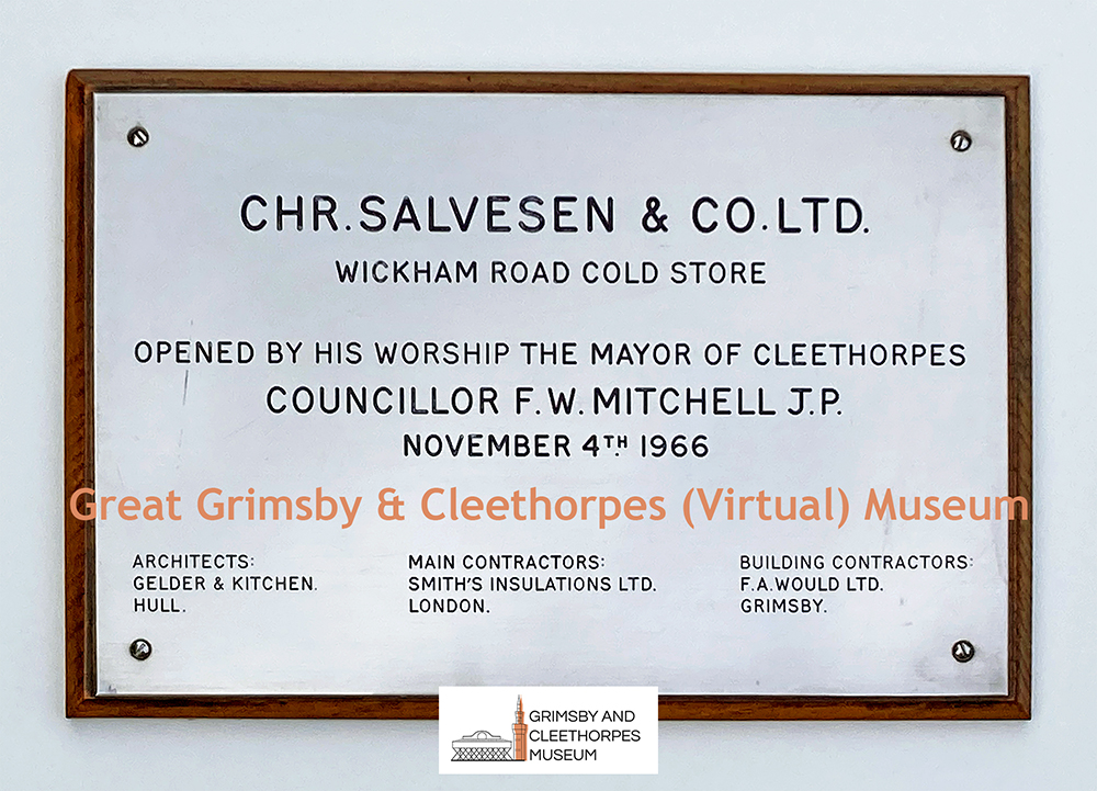 Plaque commemorating the 1966 opening of Christian Salvesen’s Wickham Road Cold Store in Grimsby